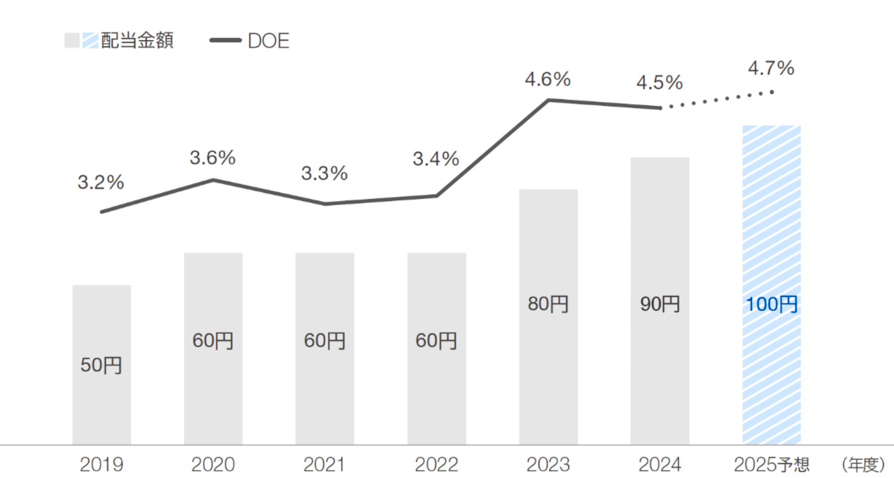 ※自己資本配当率(DOE)=配当金総額 ÷((期首自己資本+期末自己資本)÷2)